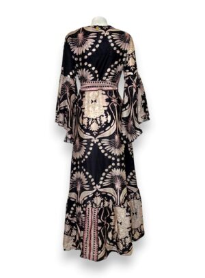 Abito incrociato asimmetrico stampa fiori bicolore